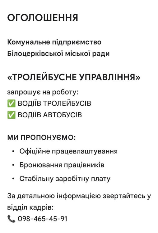 Тролейбусне управління запрошує на роботу