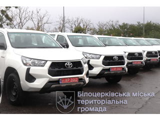 «Попри усі виклики війни, допомагаємо фронту. Цього разу Біла Церква придбала для воїнів та передала 17 новеньких повнопривідних пікапів Toyota Hilux.