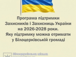 У Білоцерківській міській територіальній громаді діє Програма підтримки Захисників і Захисниць України на 2026–2028 роки. Її головна ме...