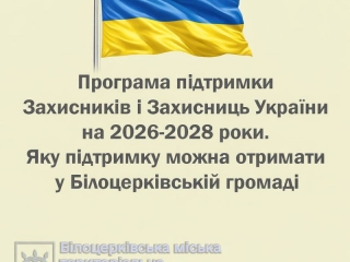 У Білоцерківській міській територіальній громаді діє Програма підтримки Захисників і Захисниць України на 2026–2028 роки. Її головна мета — створення додаткових механізмів соціальної підтримки та надання додаткових соціальних гарантій діючим військовослужбовцям, ветеранам війни, членам сімей загиблих (померлих), а також зниклих безвісти за особливих обставин Захисників і Захисниць України.